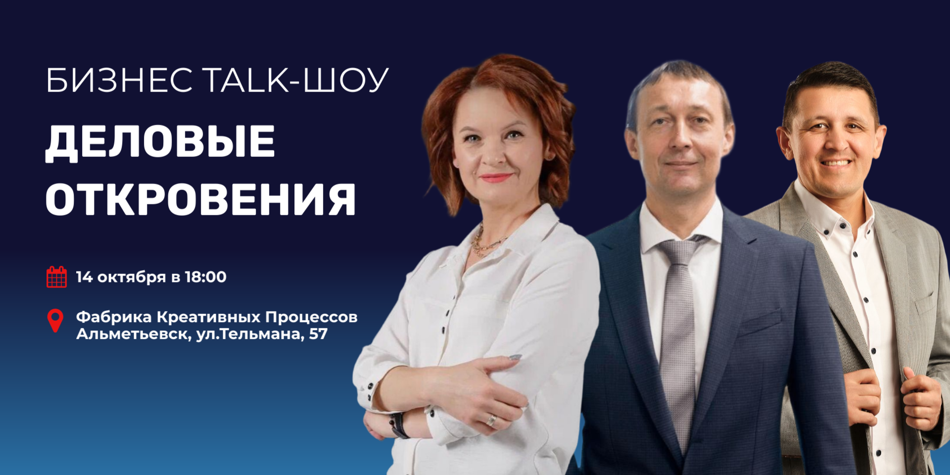 на бизнес talk-show "Деловые Откровения"! Это уникальное мероприятие, где вы станете частью интерактивных дискуссий и услышите вдохновляющие истории успеха от ведущих экспертов и предпринимателей.